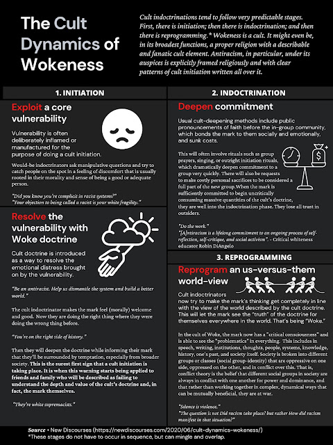 The new woke gospel teaches group guilt that requires group repentance. It's not the soul that sinneth that dies, but the race that sinneth. The former woke gospel added circumcision and the present one adds resignation to racial privilege and a kind of reparation, an adequate penitence for cooperation with wrong outcomes in the past. Their teeth really are bent because you ate grapes (Jeremiah 31:29).